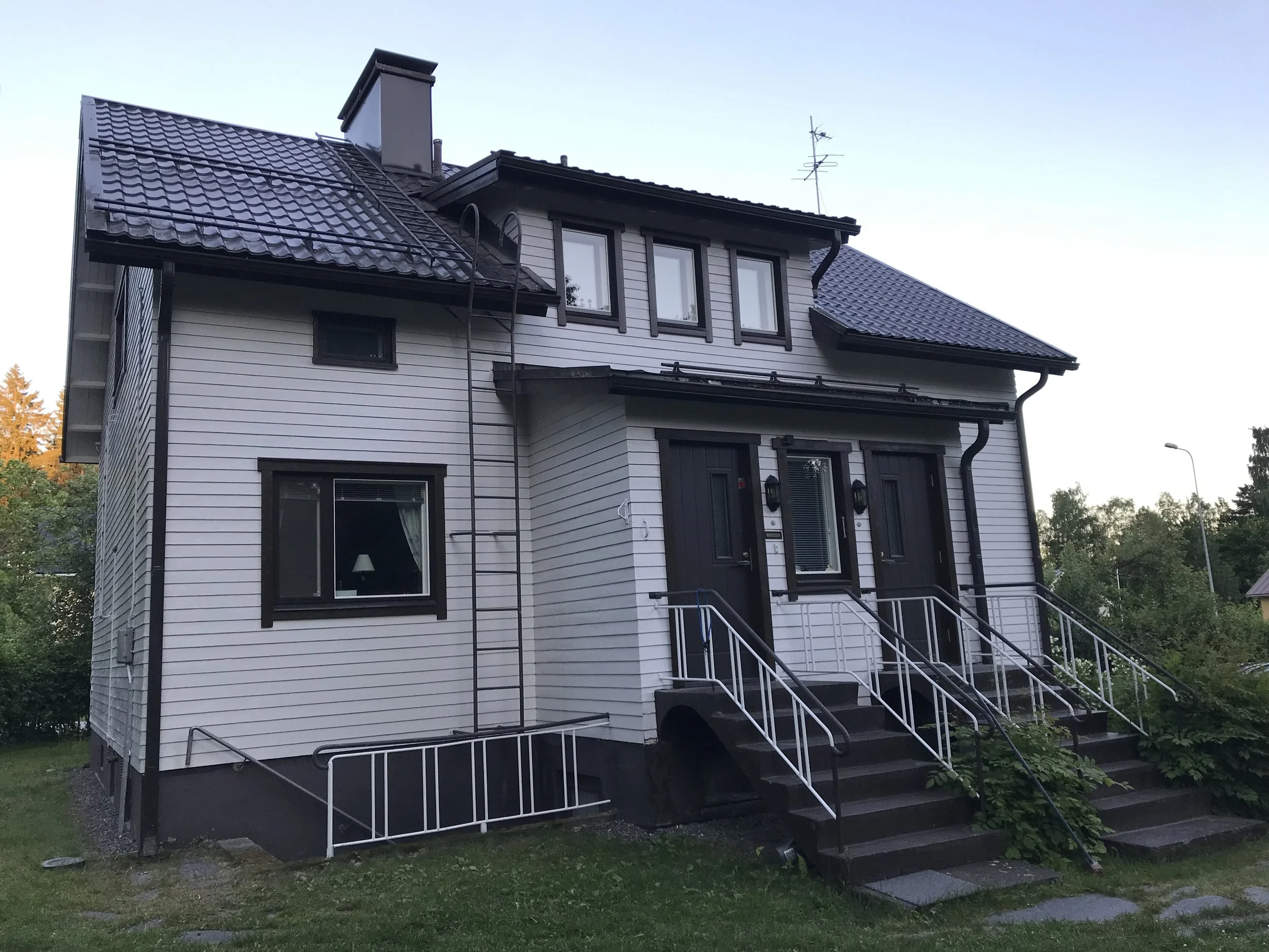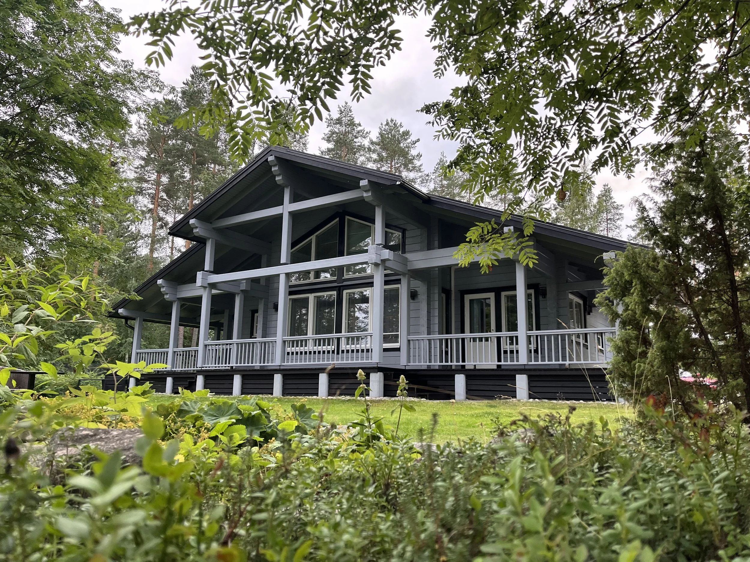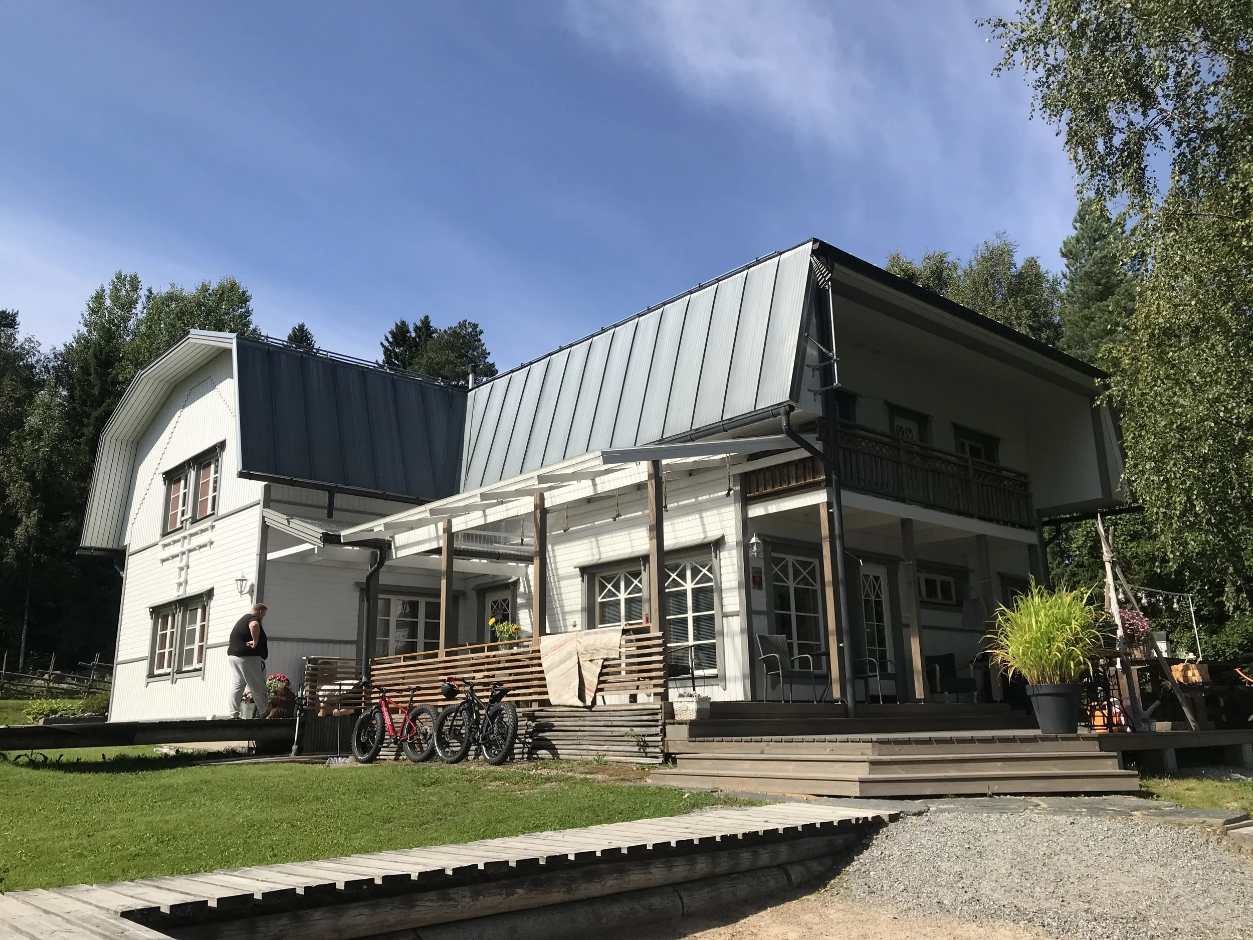 Komea maalaistalo. Henkilönostimella päästiin terassin päälle tekemään, Viitasaari 2024.