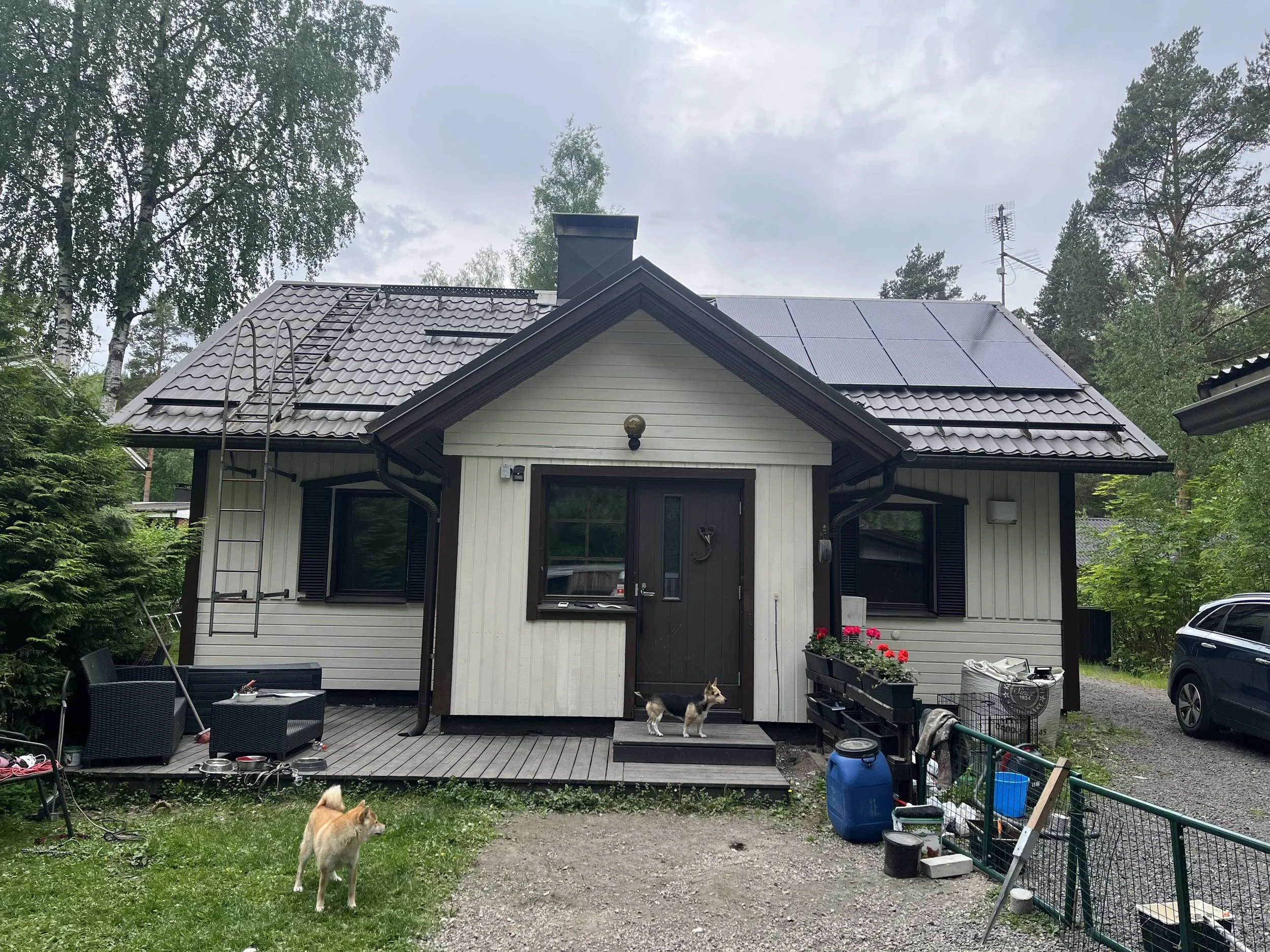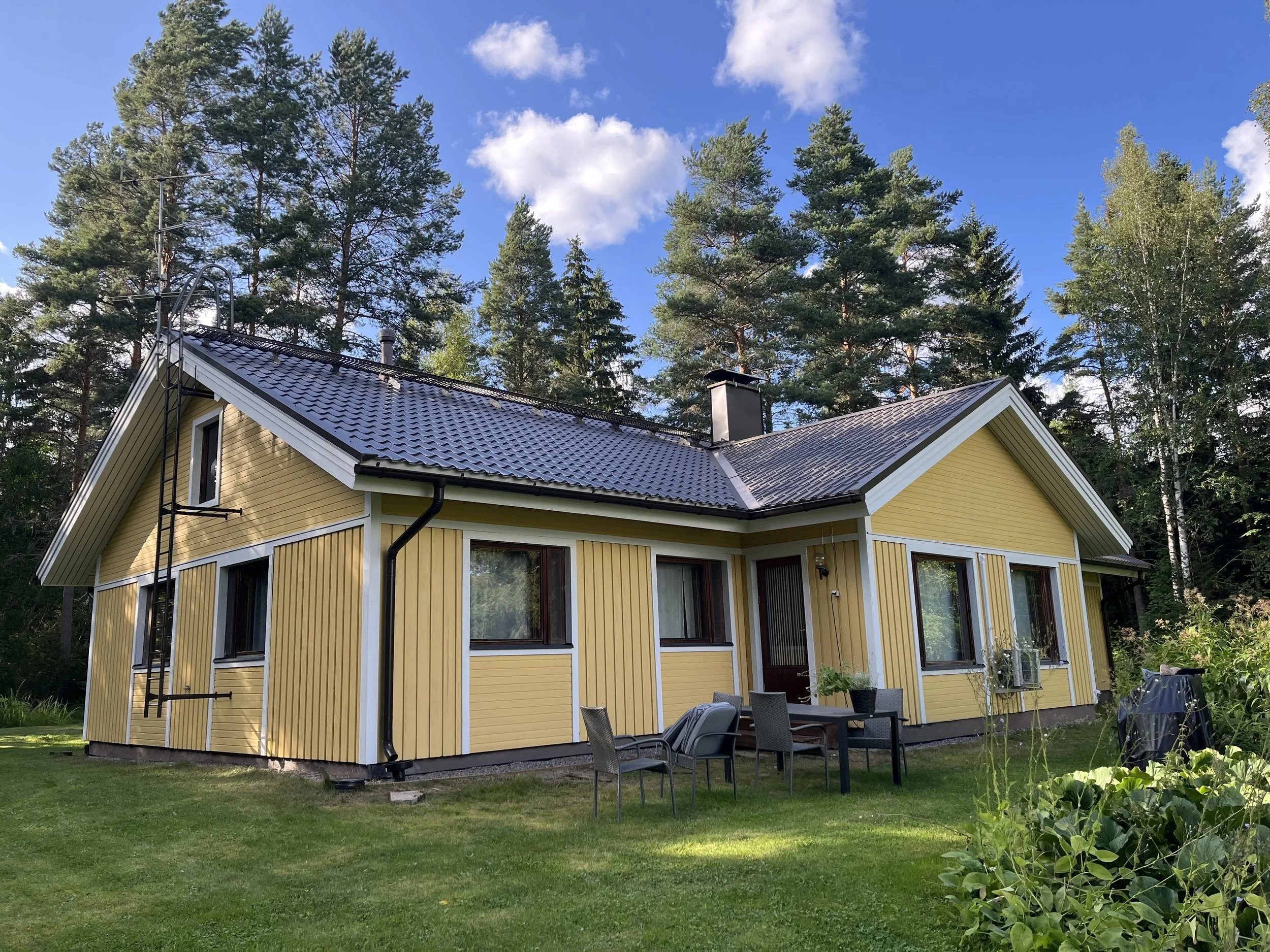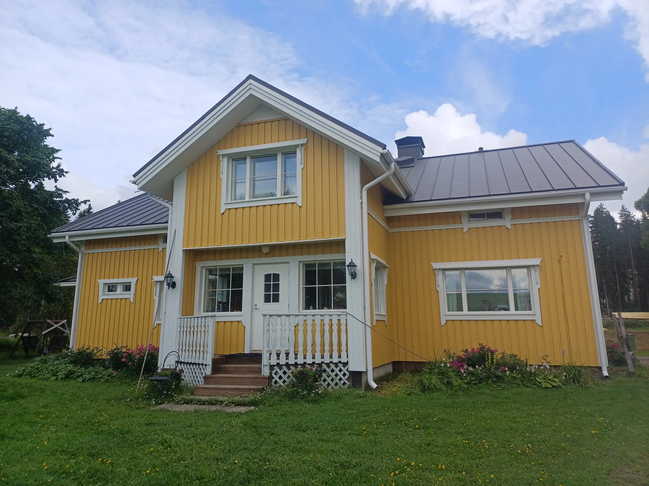 Komea sienitalo. Paljon neliöitä ja terassin kate vaihdettiin kaupanpäälle. Äänekoski 2024.